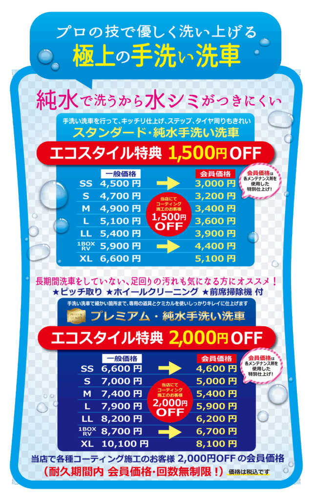 プレミアム手洗い洗車 料金表